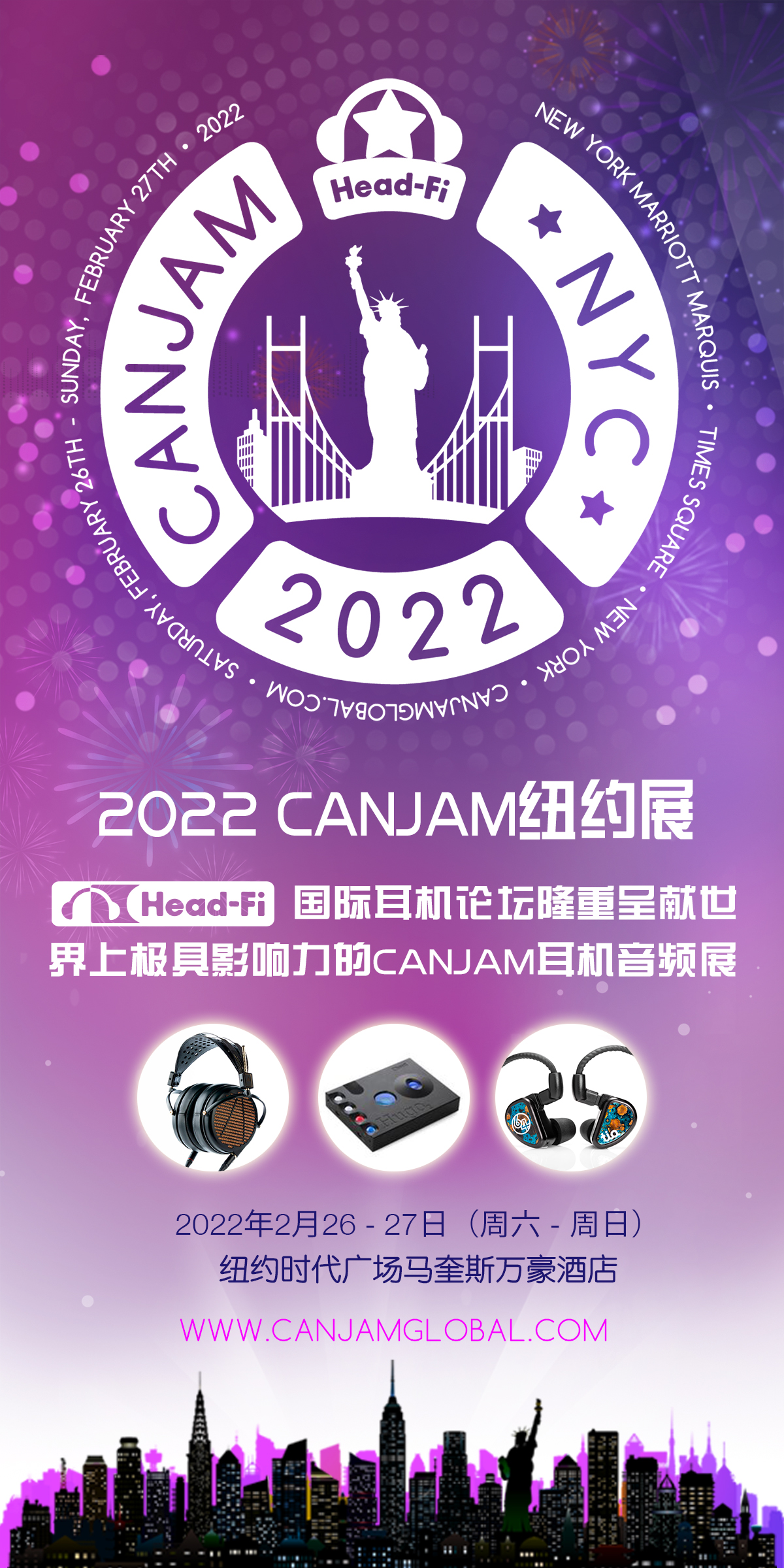 CanJam再次来到纽约中心标志性的时代广场马奎斯万豪酒店举办。本次展会展览空间超过20,000平方英尺,超过100多个专业品牌参与其中,参与展示的产品有最新型的耳机及个人音频电子产品,价格从50美元的耳塞到价值50,000美元的世界上最好的耳机音响系统。